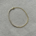 Nathalie er et klassisk link armbånd, hvor halvdelen er krydret med smukke glimtende zirkoniasten, som tilføjer et feminint touch.