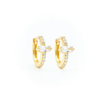 Rosette øreringene er en elegant og minimalistisk creol med hvide zirkonia sten. Som en smuk detalje, sidder der en fin baguettesleben sten på tværs, som skaber et enkelt og elegant look.