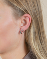 Rosette øreringene er en elegant og minimalistisk creol med hvide zirkonia sten. Som en smuk detalje, sidder der en fin baguettesleben sten på tværs, som skaber et enkelt og elegant look.