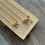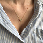 Tilføj et strejf af elegance og femininitet til din smykkesamling med vores smukke sløjfe halskæde. Designet er tidløst og klassisk, hvilket gør den perfekt til både hverdag og festlige lejligheder.