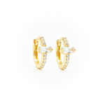 Rosette øreringene er en elegant og minimalistisk creol med hvide zirkonia sten. Som en smuk detalje, sidder der en fin baguettesleben sten på tværs, som skaber et enkelt og elegant look.