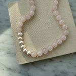 Lilou er den skønneste halskæde med en smuk sammensætning af store ægte ferskvandsperler og lyserøde rosakvarts. Det er en virkelig elegant kombination, som giver dit look kant!