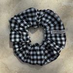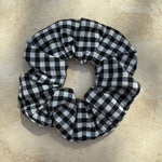 En stilfuld scrunchie hårelastik med et cool ternet print, der tilføjer et klassisk finish til dit look.