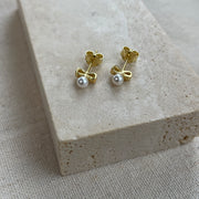 SLØJFE PERLEØRESTIKKER - FORGYLDT